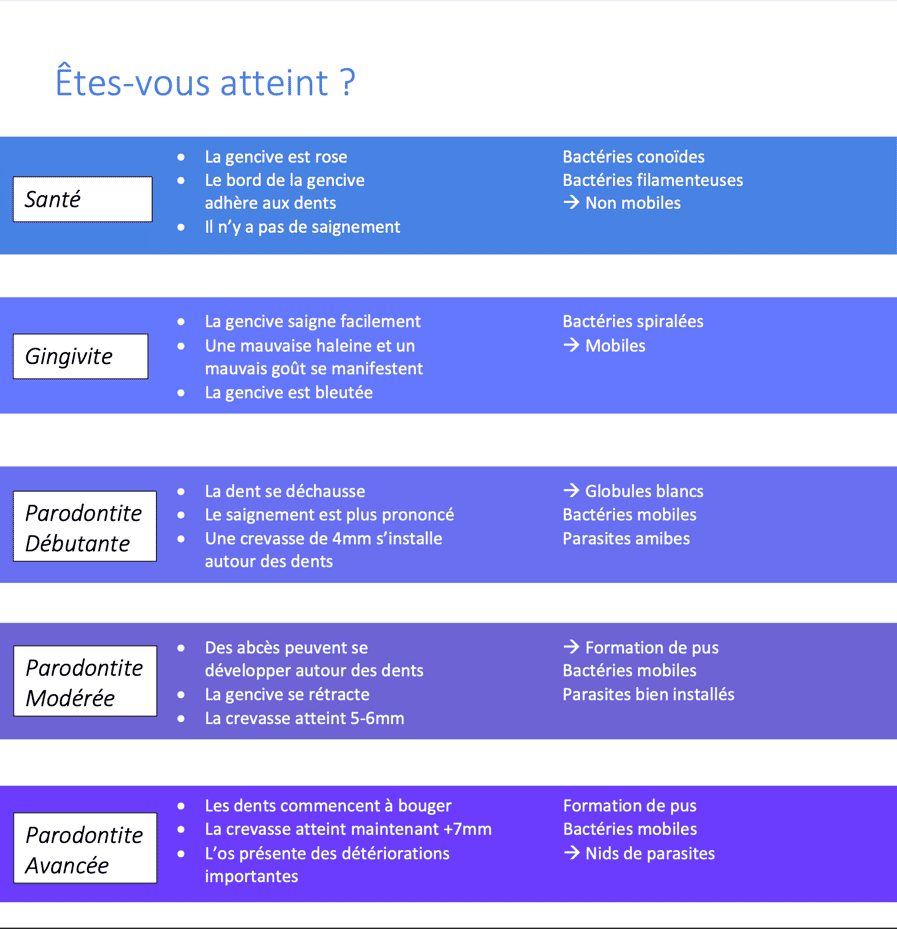 Wir analysieren Ihre Flora unter dem Mikroskop. Das Mikroskop ist ein zentrales Element der Methode, da es Ihnen ermöglicht, Ihre Desinfektion zu steuern und anzupassen, bis Sie eine normale Flora erhalten, die für die Gesundheit des Zahnfleisches repräsentativ ist.